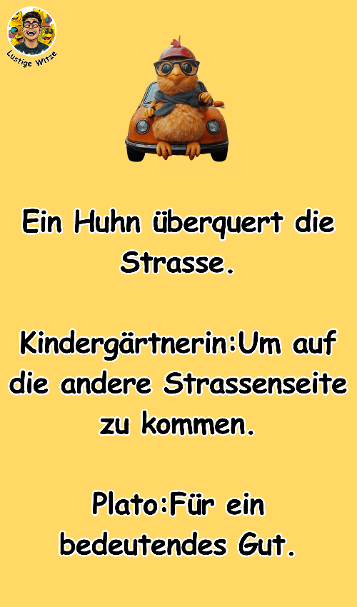 Moses:Und der Herr sprach zu dem Huhn „Du sollst die Strasse überqueren“… Und das Huhn überquerte die Strasse, und es gab grosses Frohlocken.